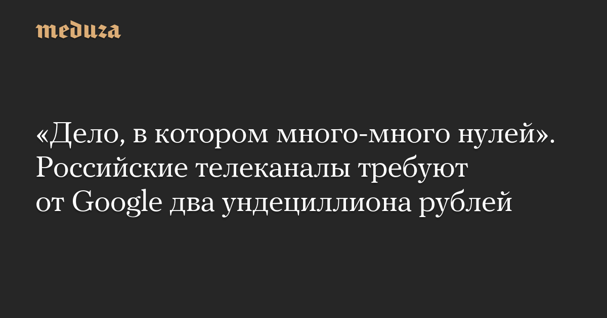 «Дело, в котором много-много нулей». Российские телеканалы требуют от Google два ундециллиона рублей