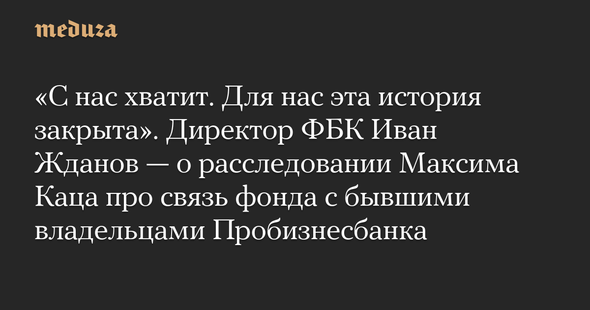 «С нас хватит. Для нас эта история закрыта». Директор ФБК Иван Жданов — о расследовании Максима Каца про связь фонда с бывшими владельцами Пробизнесбанка