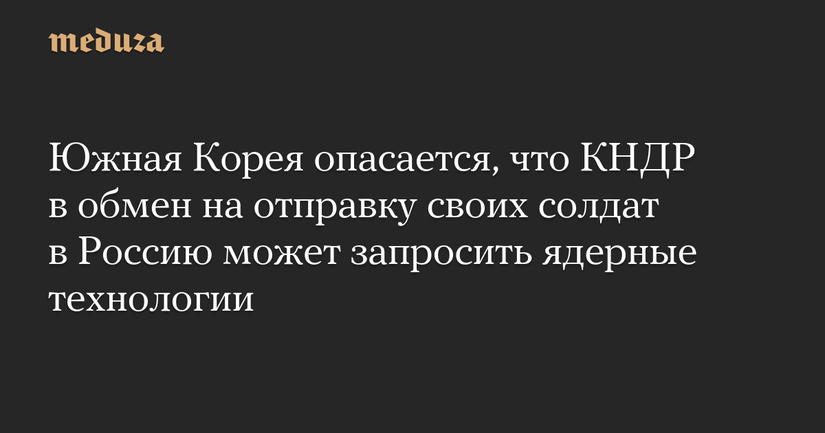 Южная Корея опасается, что КНДР в обмен на отправку своих солдат в Россию может запросить ядерные технологии