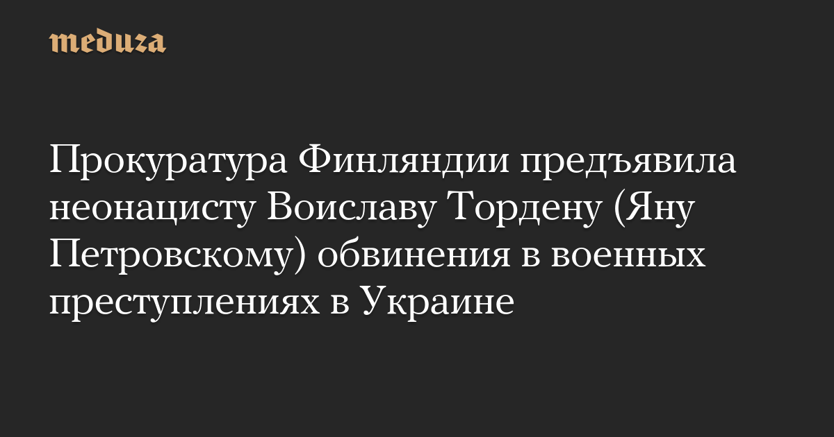 Прокуратура Финляндии предъявила обвинения в совершении военных преступлений на востоке Украины российскому неонацисту и одному из командиров диверсионно-штурмовой группы «Русич» Воиславу Тордену (Яну Петровскому). Об этом сообщает издание Yle со ссылкой на заместителя государственного прокурора Юкку Раппе.