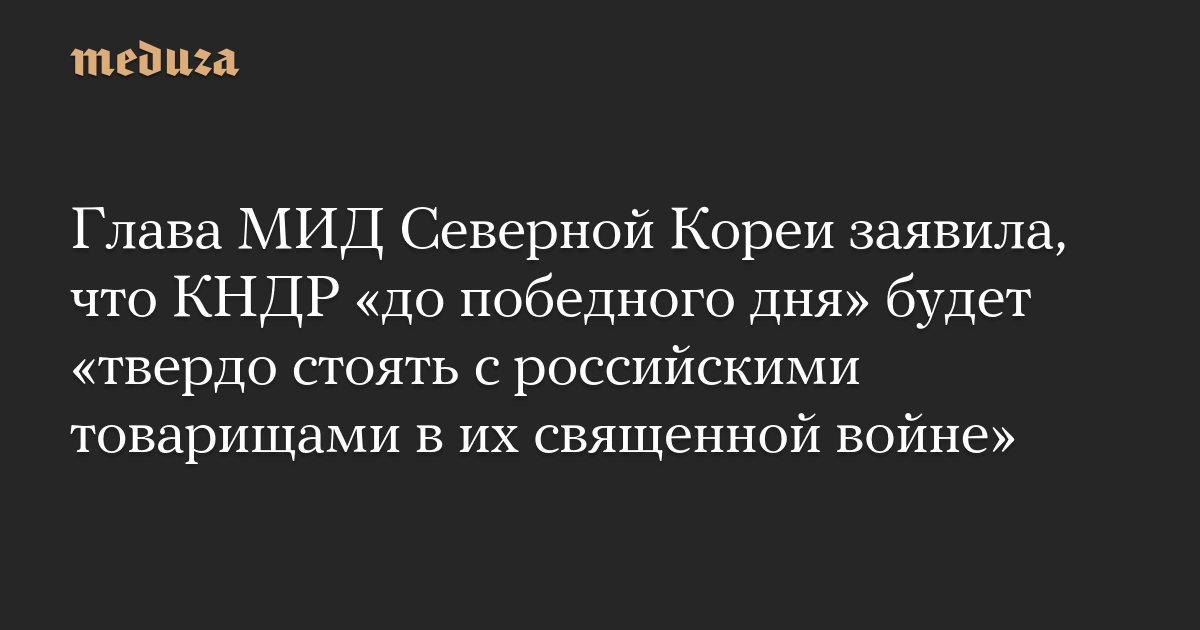 Глава МИД Северной Кореи заявила, что КНДР «до победного дня» будет «твердо стоять с российскими товарищами в их священной войне»