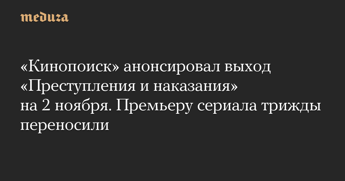 «Кинопоиск» анонсировал выход «Преступления и наказания» на 2 ноября. Премьеру сериала трижды переносили