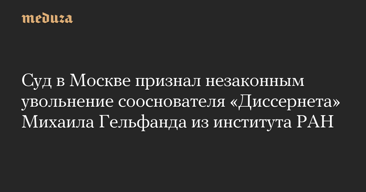 Тушинский районный суд Москвы признал незаконным увольнение доктора биологических наук и одного из основателей «Диссернета» Михаила Гельфанда из Института проблем передачи информации РАН, где он заведовал учебно-научным центром «Биоинформатика», сообщил RTVI.