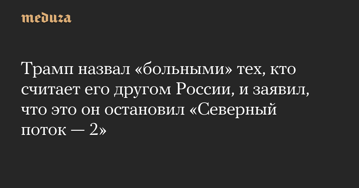 Трамп назвал «больными» тех, кто считает его другом России, и заявил, что это он остановил «Северный поток — 2»
