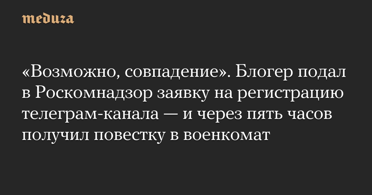 «Возможно, совпадение». Блогер подал в Роскомнадзор заявку на регистрацию телеграм-канала — и через пять часов получил повестку в военкомат