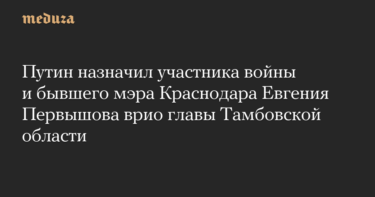 Путин назначил участника войны и бывшего мэра Краснодара Евгения Первышова врио главы Тамбовской области