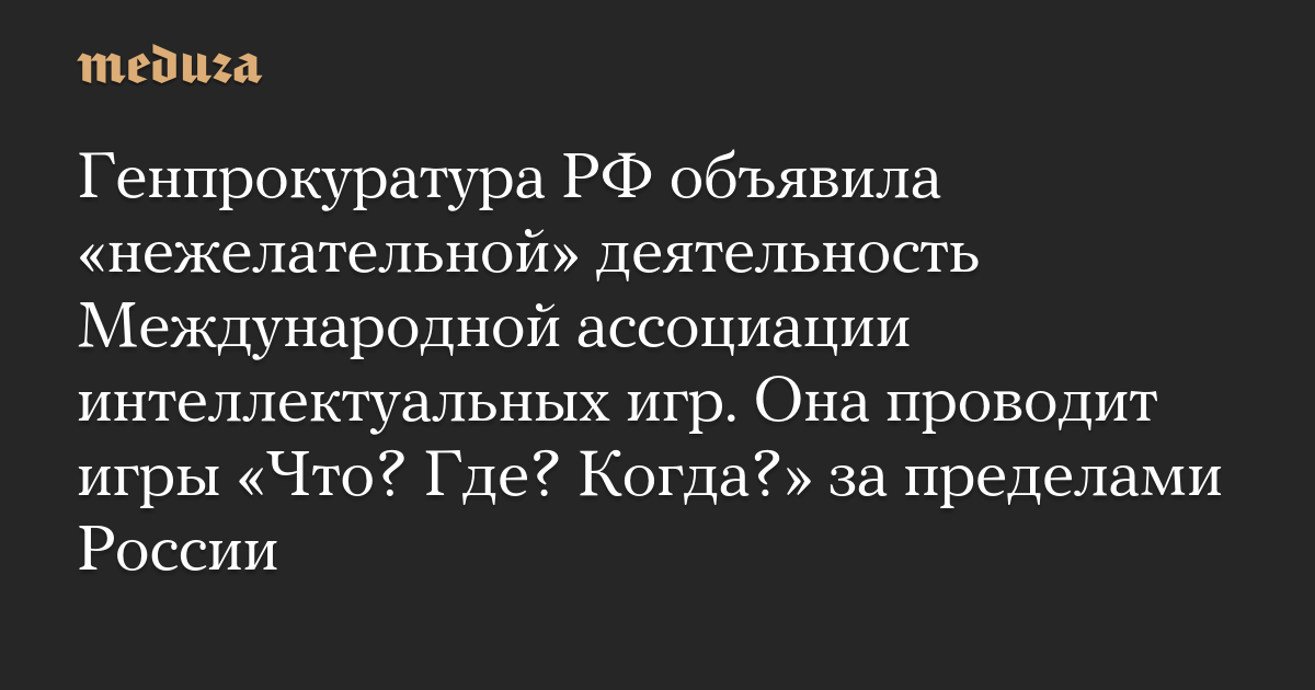 Генпрокуратура РФ объявила «нежелательной» деятельность Международной ассоциации интеллектуальных игр. Она проводит игры «Что? Где? Когда?» за пределами России