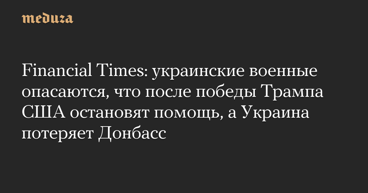 Financial Times: украинские военные опасаются, что после победы Трампа США остановят помощь, а Украина потеряет Донбасс