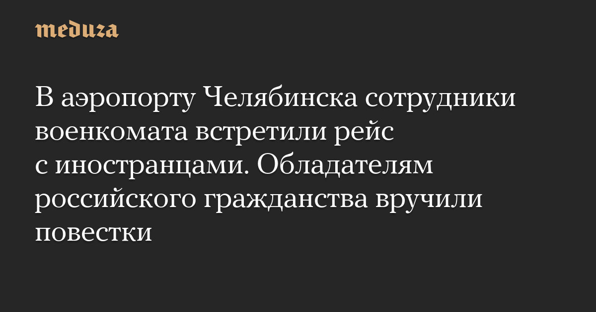 В аэропорту Челябинска сотрудники военкомата встретили рейс с иностранцами. Обладателям российского гражданства вручили повестки