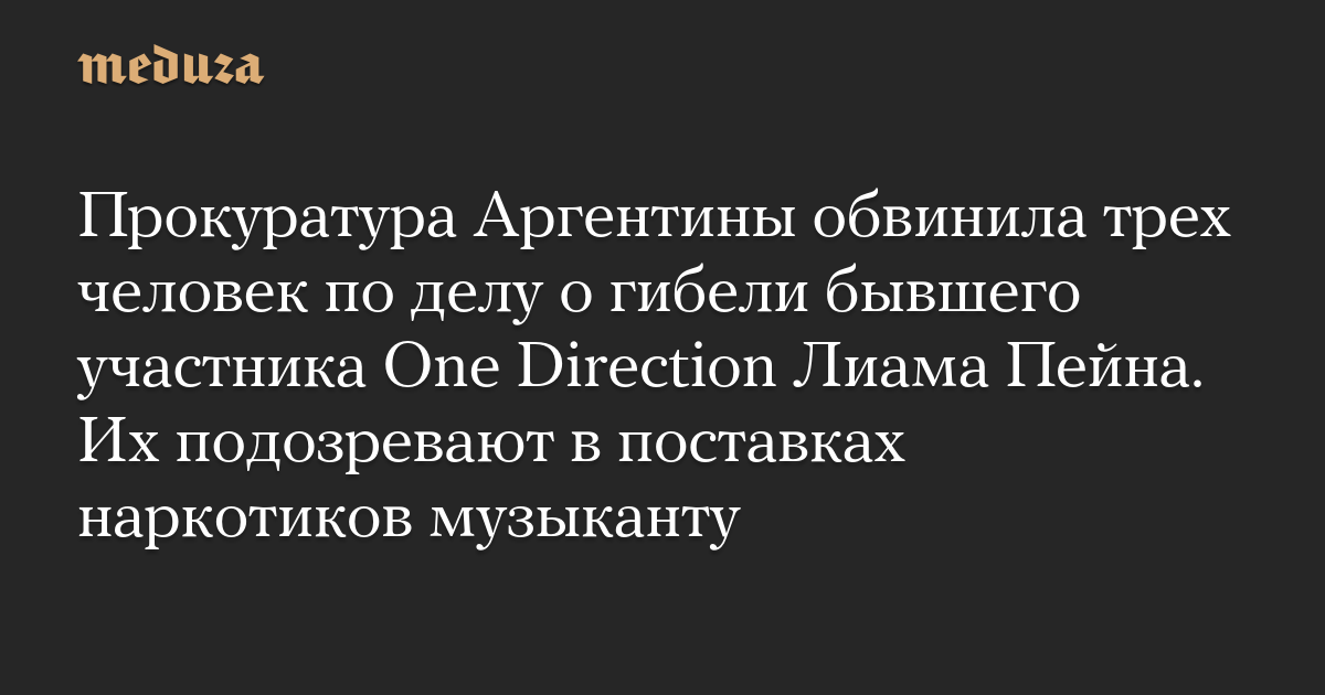 Прокуратура Аргентины обвинила трех человек по делу о гибели бывшего участника One Direction Лиама Пейна. Их подозревают в поставках наркотиков музыканту