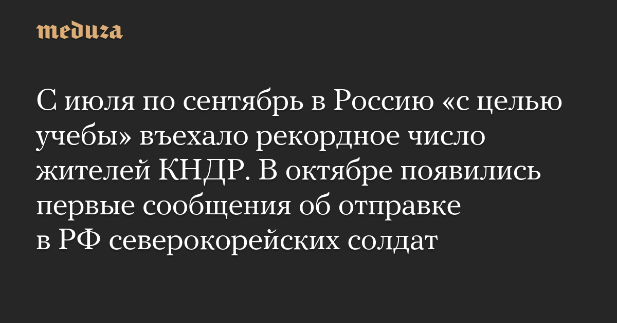С июля по сентябрь в Россию «с целью учебы» въехало рекордное число жителей КНДР. В октябре появились первые сообщения об отправке в РФ северокорейских солдат