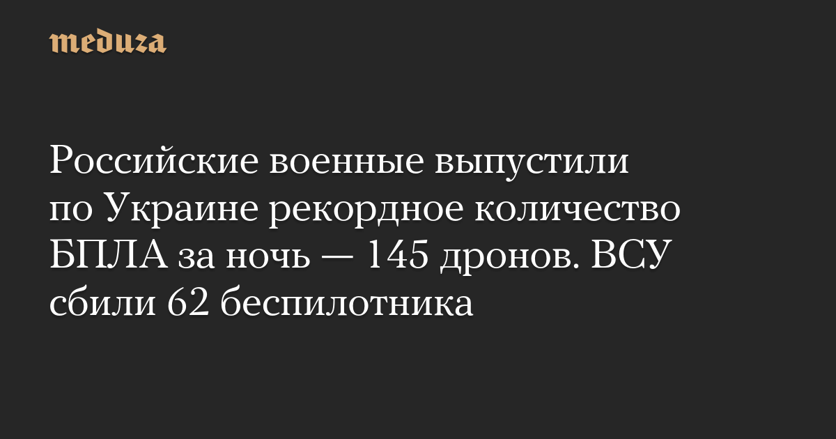 Российские военные выпустили по Украине рекордное количество БПЛА за ночь — 145 дронов. ВСУ сбили 62 беспилотника