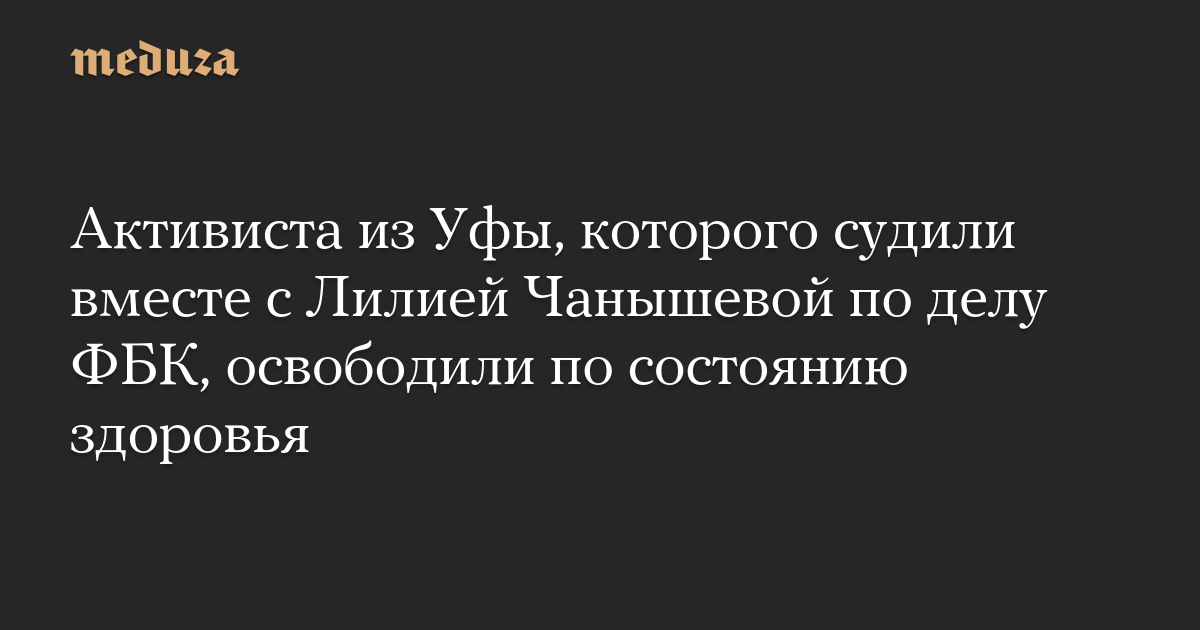 Активиста из Уфы, которого судили вместе с Лилией Чанышевой по делу ФБК, освободили по состоянию здоровья
