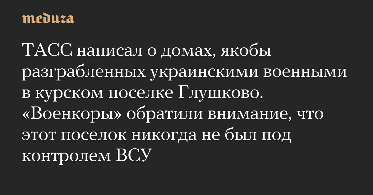 ТАСС написал о домах, якобы разграбленных украинскими военными в курском поселке Глушково. «Военкоры» обратили внимание, что этот поселок никогда не был под контролем ВСУ