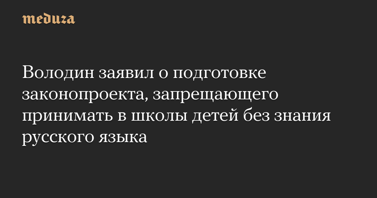 Володин заявил о подготовке законопроекта, запрещающего принимать в школы детей без знания русского языка