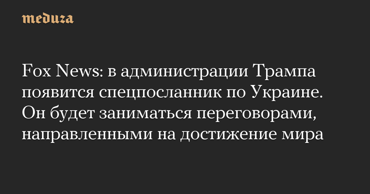 Fox News: в администрации Трампа появится спецпосланник по Украине. Он будет заниматься переговорами, направленными на достижение мира