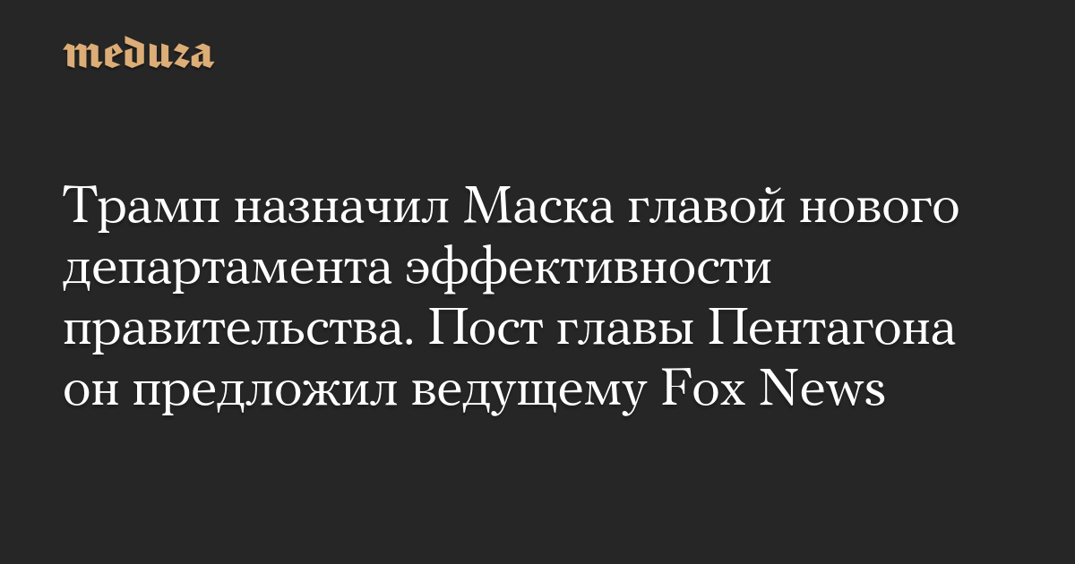 Трамп назначил Маска главой нового департамента эффективности правительства. Пост главы Пентагона он предложил ведущему Fox News