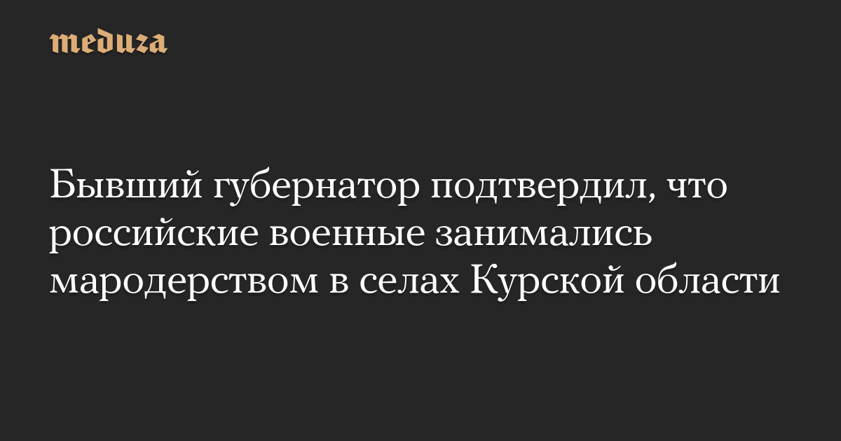 Бывший губернатор подтвердил, что российские военные занимались мародерством в селах Курской области
