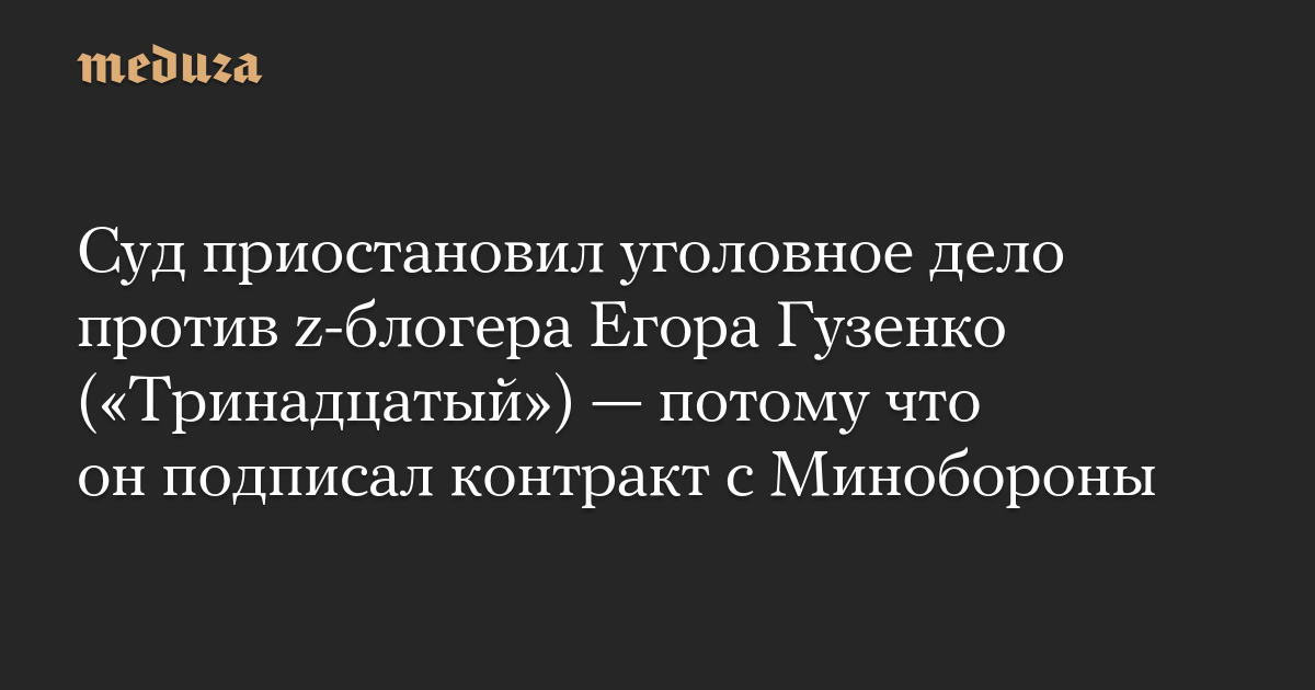 Суд приостановил уголовное дело против z-блогера Егора Гузенко («Тринадцатый») — потому что он подписал контракт с Минобороны