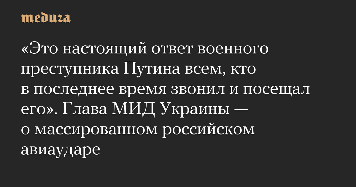 «Это настоящий ответ военного преступника Путина всем, кто в последнее время звонил и посещал его». Глава МИД Украины — о массированном российском авиаударе