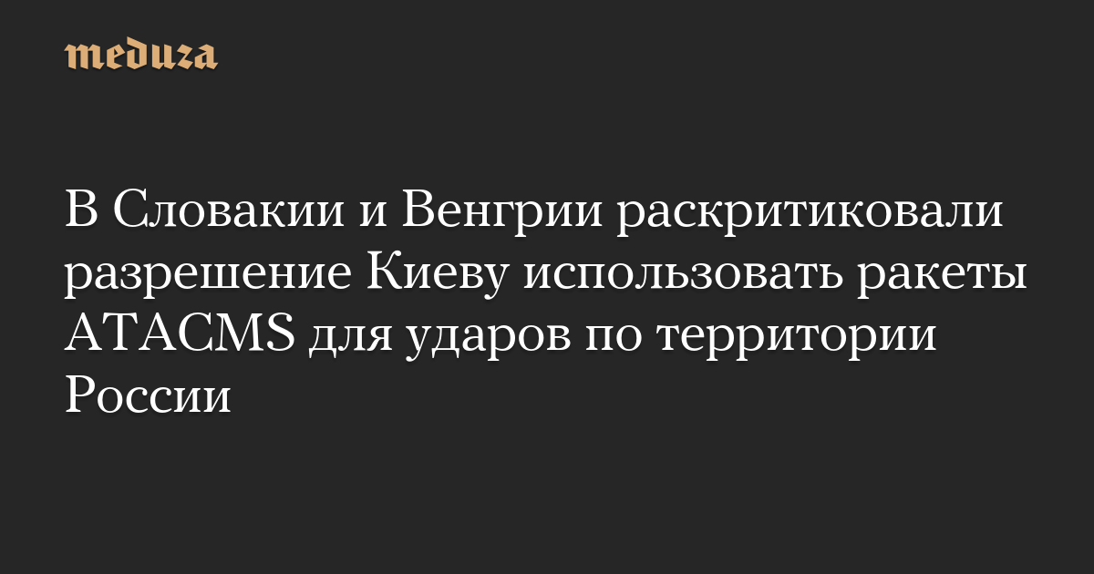 В Словакии и Венгрии раскритиковали разрешение Киеву использовать ракеты ATACMS для ударов по территории России