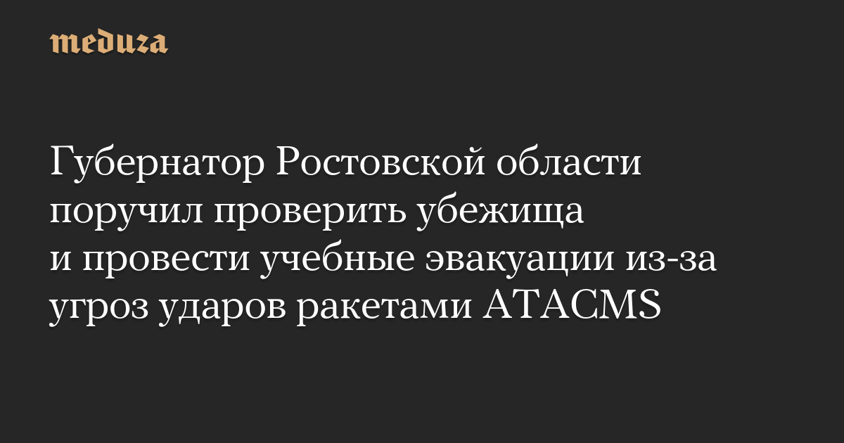 Губернатор Ростовской области Юрий Слюсарь поручил провести учебные эвакуации и проверить убежища в регионе из-за угроз ударов ракетами ATACMS. Об этом пишет «161.ru».