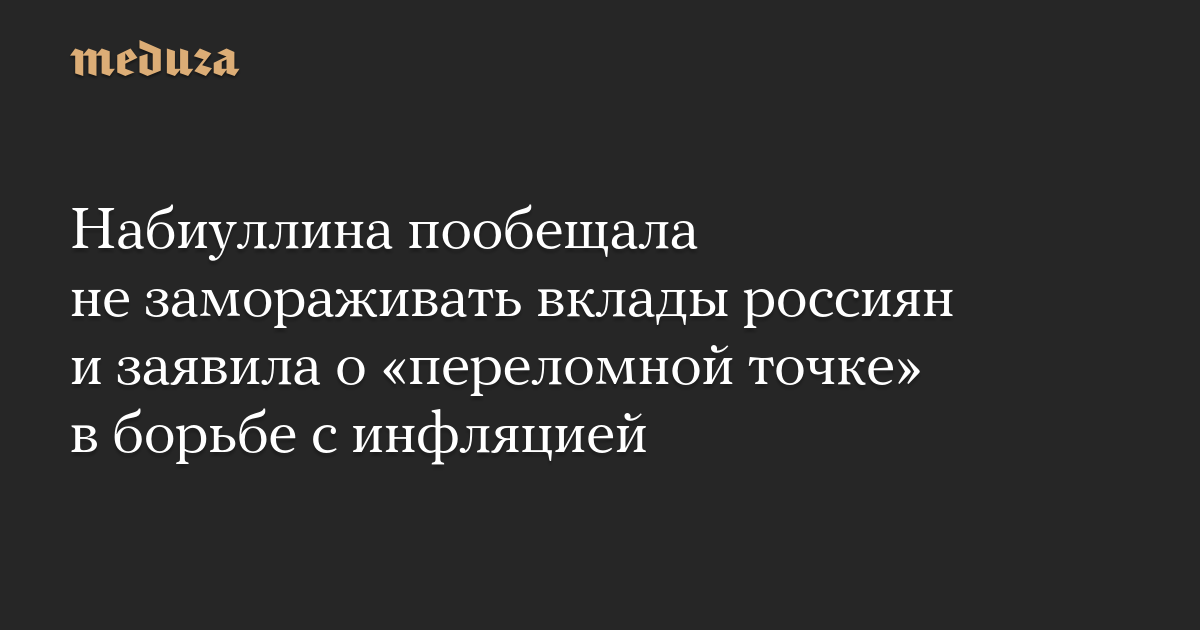 Набиуллина пообещала не замораживать вклады россиян и заявила о «переломной точке» в борьбе с инфляцией