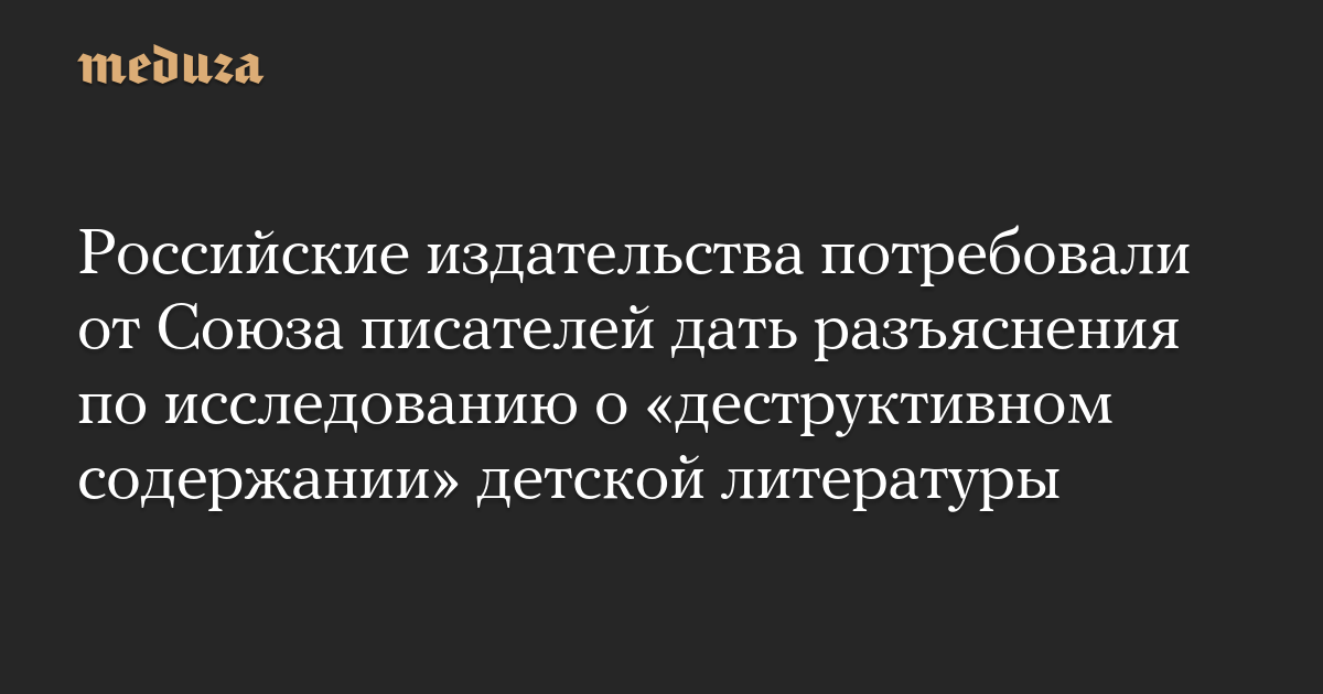 Российские издательства потребовали от Союза писателей дать разъяснения по исследованию о «деструктивном содержании» детской литературы