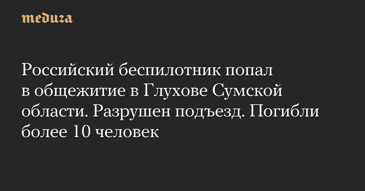Российский беспилотник попал в общежитие в Глухове Сумской области. Разрушен подъезд. Погибли более 10 человек