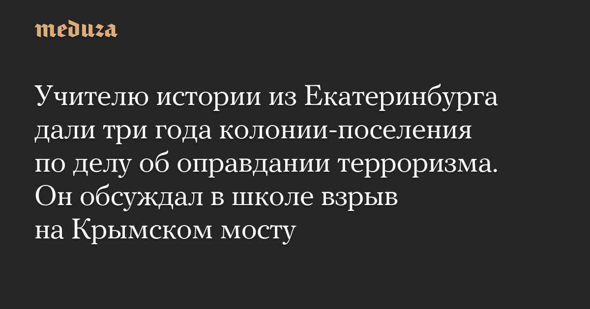 Учителю истории из Екатеринбурга дали три года колонии-поселения по делу об оправдании терроризма. Он обсуждал в школе взрыв на Крымском мосту