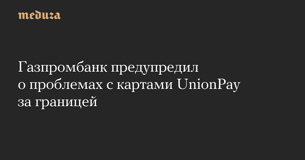 Газпромбанк предупредил о проблемах с картами UnionPay за границей