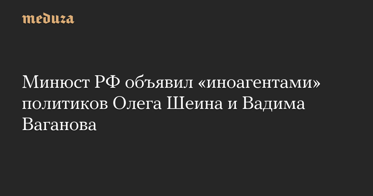 Минюст РФ объявил «иноагентами» политиков Олега Шеина и Вадима Ваганова