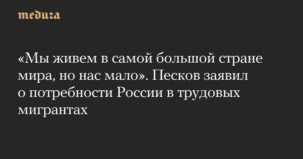 «Мы живем в самой большой стране мира, но нас мало». Песков заявил о потребности России в трудовых мигрантах