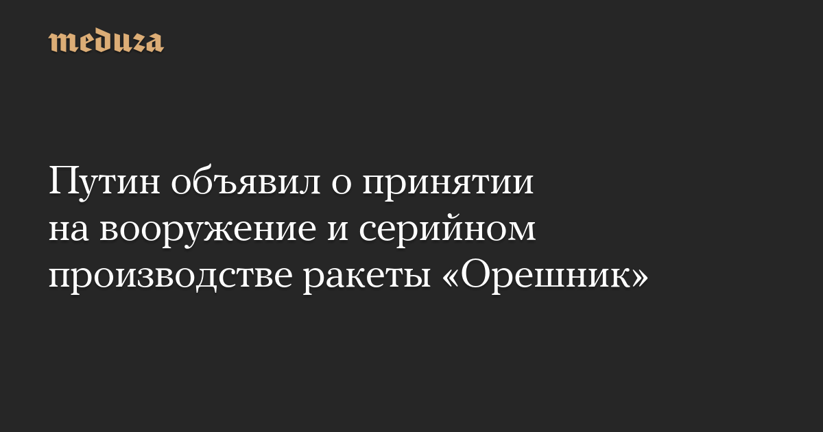 Решение о серийном производстве экспериментальной баллистической ракеты средней дальности «Орешник», которую Россия выпустила по Украине 21 ноября, уже принято и «практически организовано». Об этом заявил Владимир Путин на встрече в Кремле с руководством Минобороны и представителями военно-промышленного комплекса.