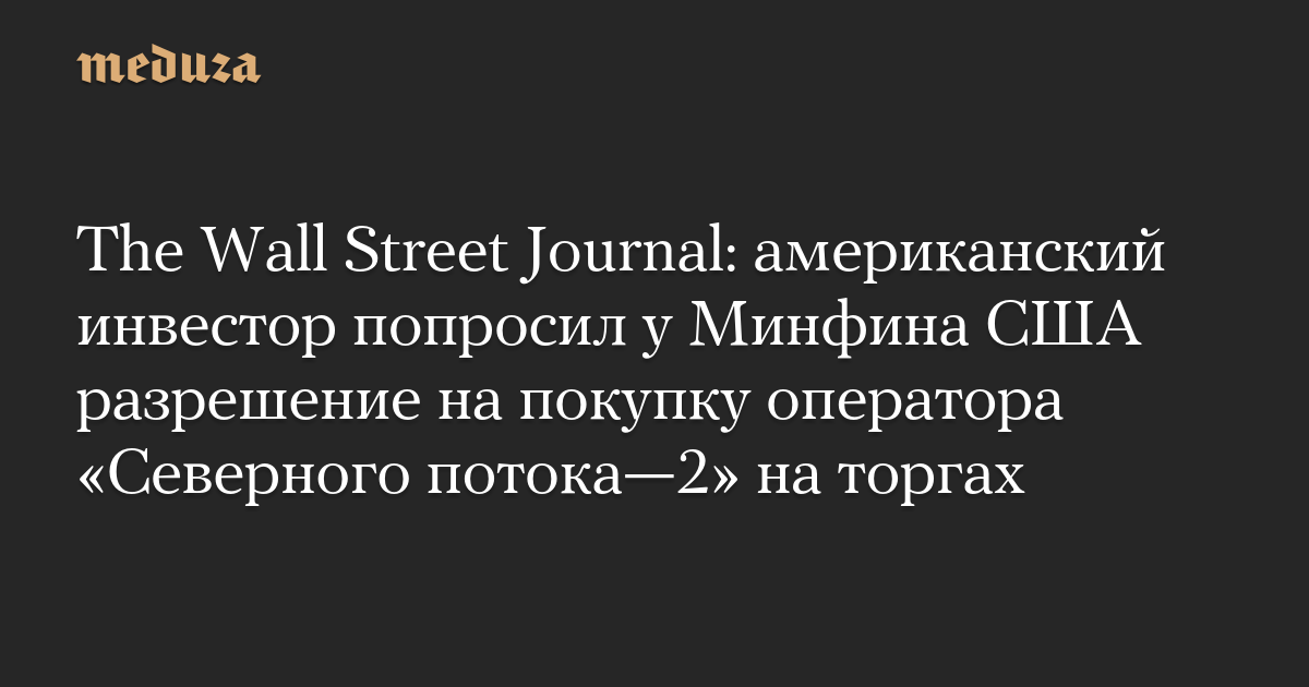 The Wall Street Journal: американский инвестор попросил у Минфина США разрешение на покупку оператора «Северного потока—2» на торгах
