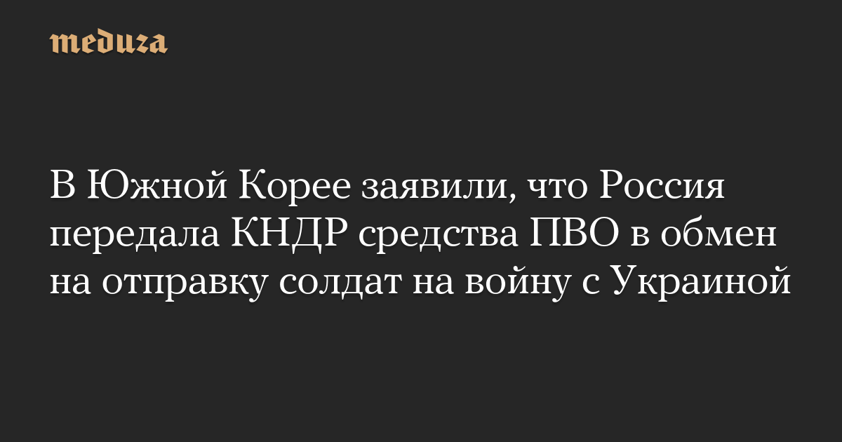 В Южной Корее заявили, что Россия передала КНДР средства ПВО в обмен на отправку солдат на войну с Украиной