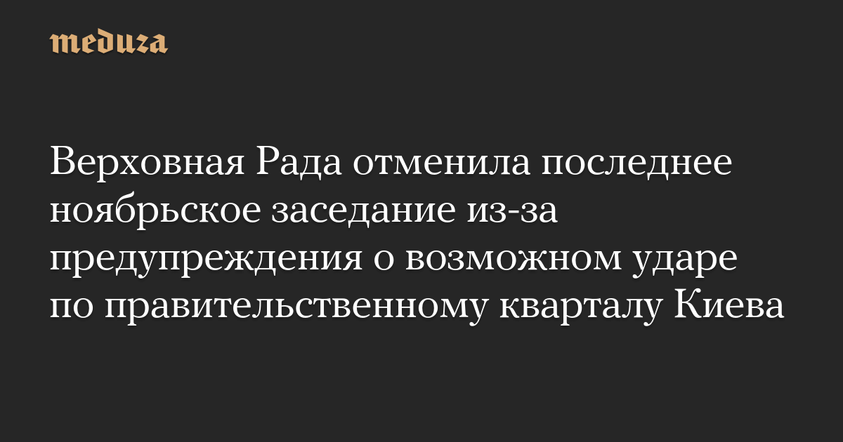 Верховная Рада отменила последнее ноябрьское заседание из-за предупреждения о возможном ударе по правительственному кварталу Киева