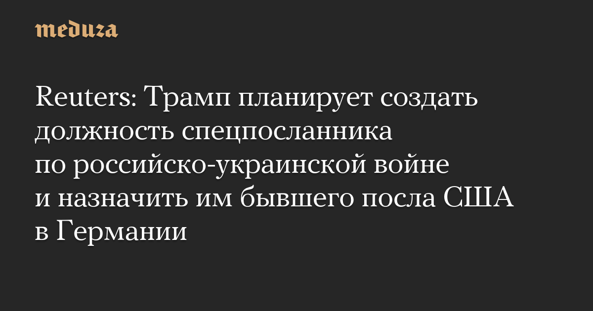 Reuters: Трамп планирует создать должность спецпосланника по российско-украинской войне и назначить им бывшего посла США в Германии