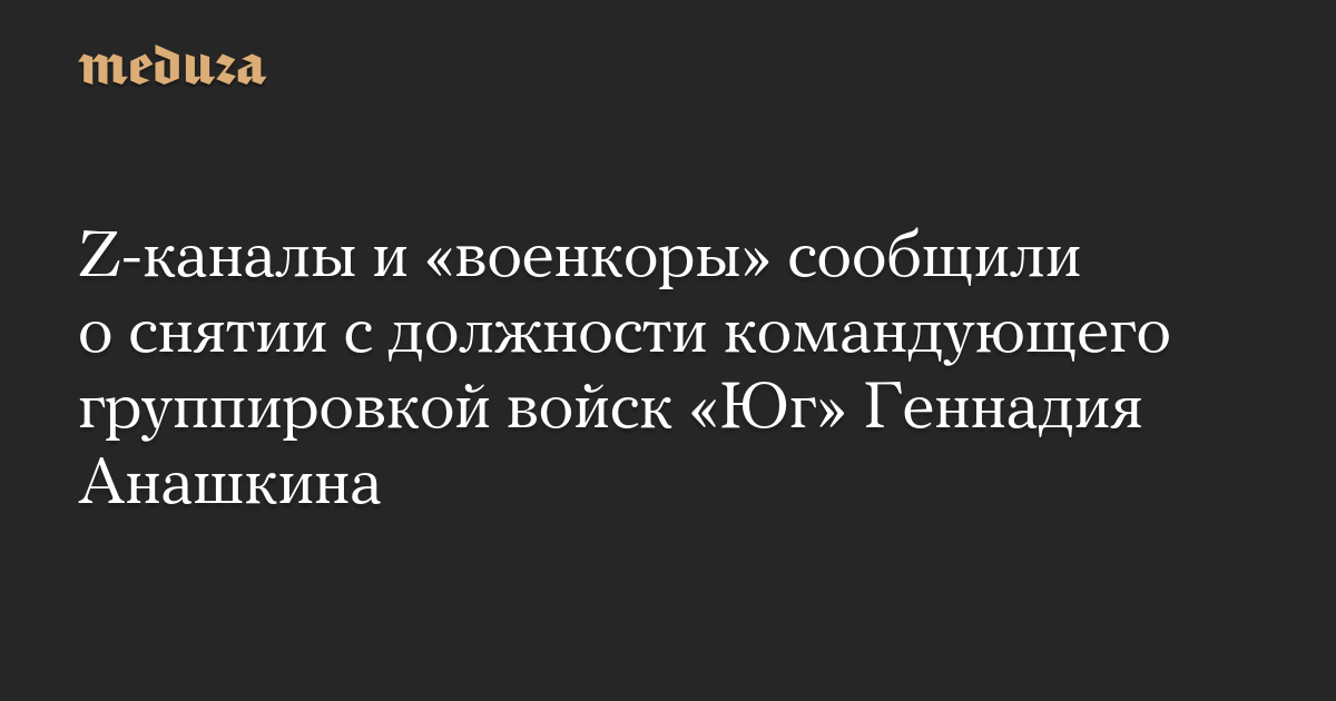 О снятии Анашкина пишут «военкор» Юрий Котенок, военный блогер Кирилл Федоров, а также телеграм-каналы «Военный осведомитель» и «Рыбарь».