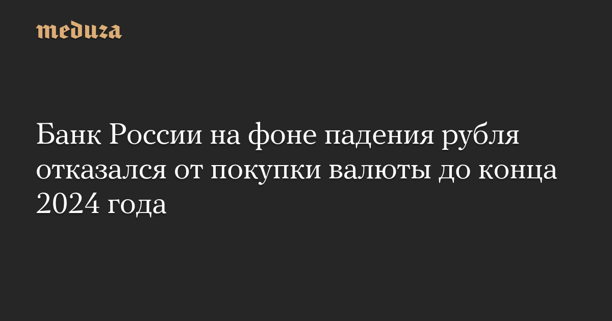 Банк России на фоне падения рубля отказался от покупки валюты до конца 2024 года