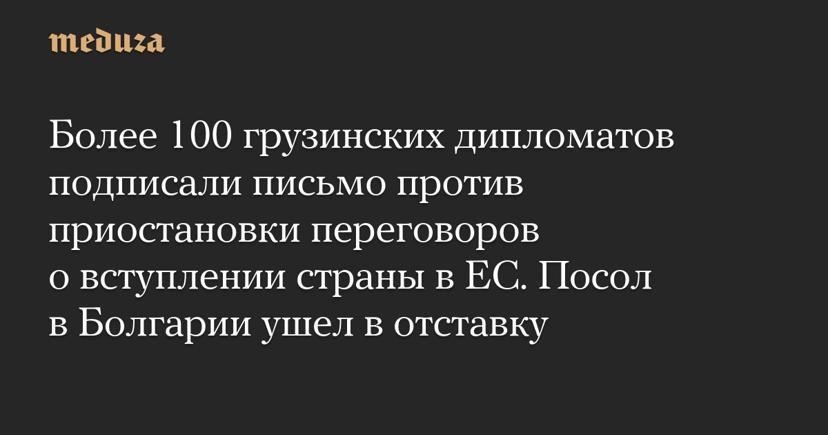 Более 100 грузинских дипломатов подписали письмо против приостановки переговоров о вступлении страны в ЕС. Посол в Болгарии ушел в отставку