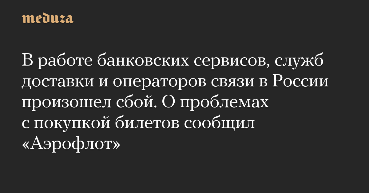 В работе банковских сервисов, служб доставки и операторов связи в России произошел сбой. О проблемах с покупкой билетов сообщил «Аэрофлот»