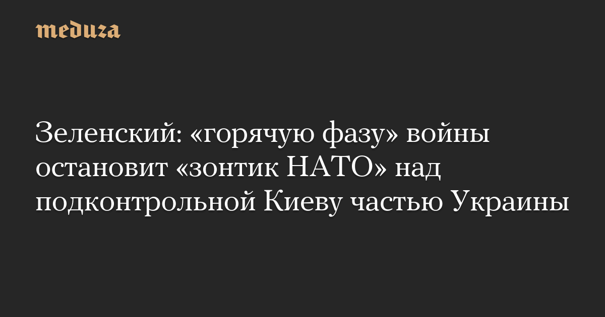 Зеленский: «горячую фазу» войны остановит «зонтик НАТО» над подконтрольной Киеву частью Украины