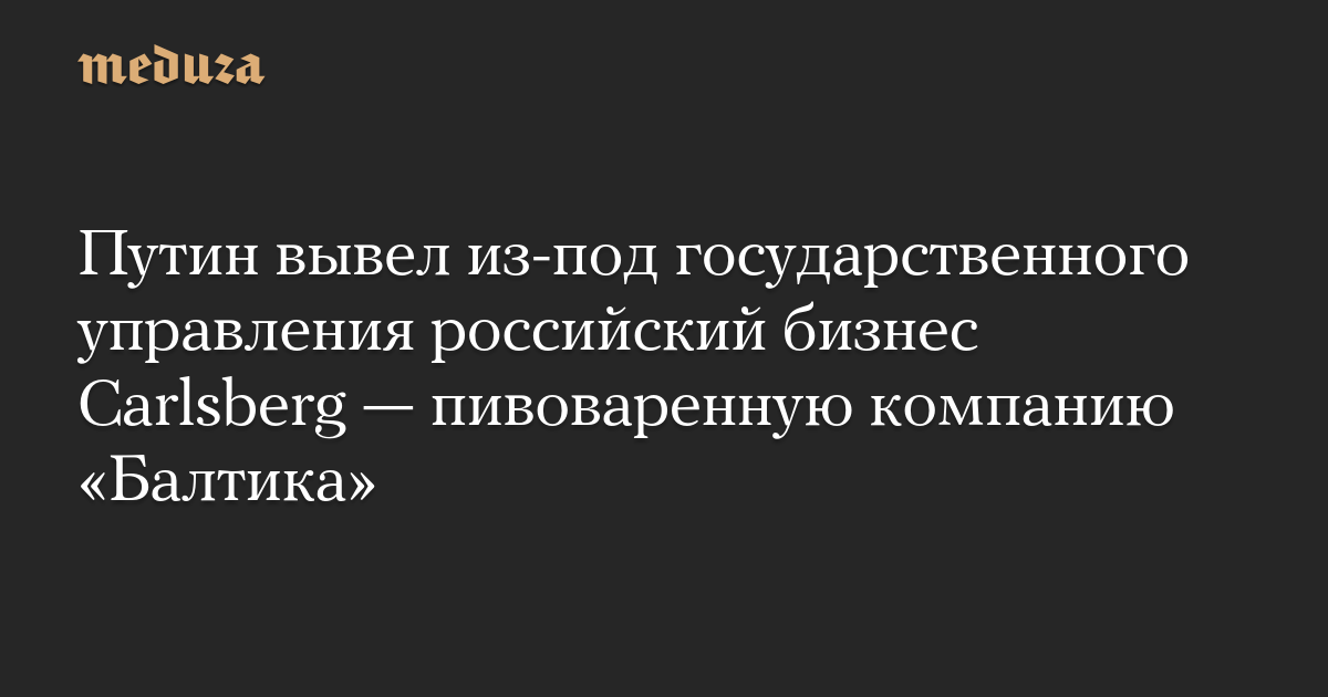 Путин вывел из-под государственного управления российский бизнес Carlsberg — пивоваренную компанию «Балтика»