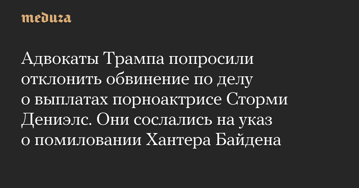 Адвокаты Трампа попросили отклонить обвинение по делу о выплатах порноактрисе Сторми Дениэлс. Они сослались на указ о помиловании Хантера Байдена