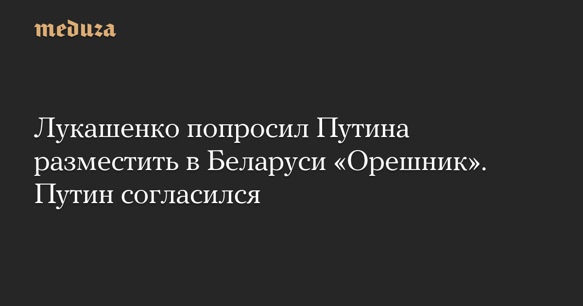 Лукашенко попросил Путина разместить в Беларуси «Орешник». Путин согласился