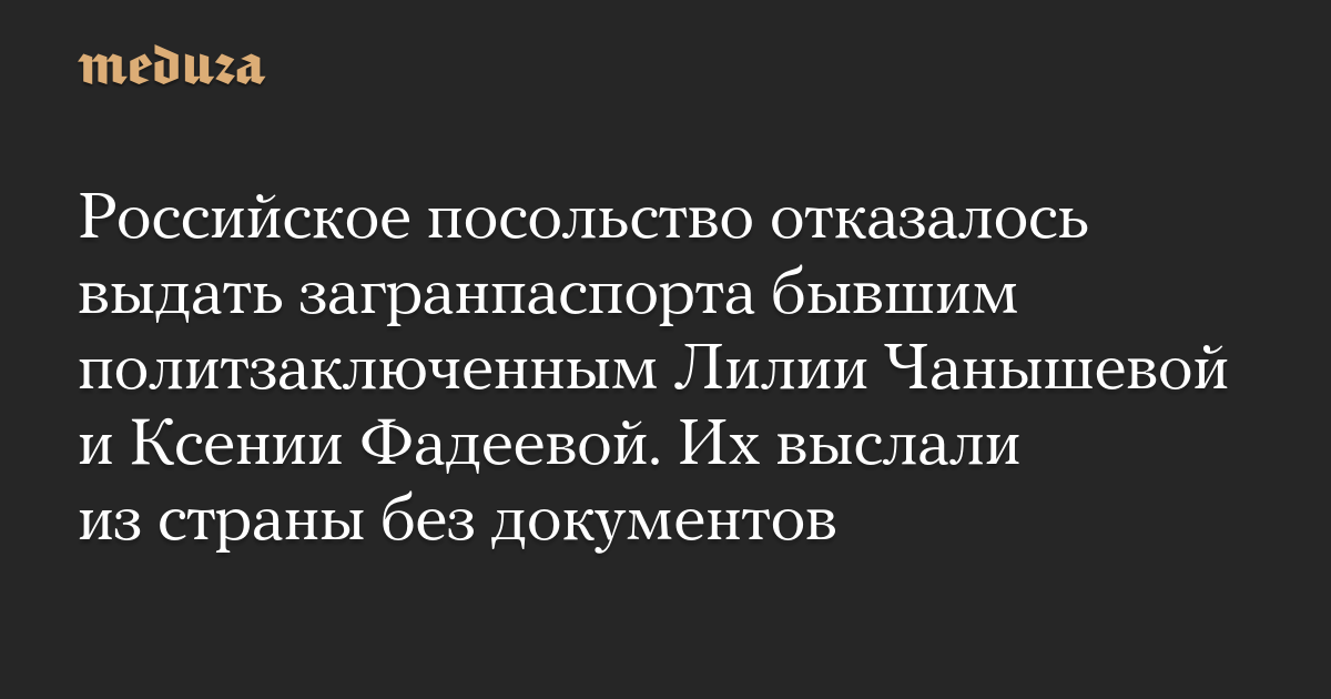 Российское посольство отказалось выдать загранпаспорта бывшим политзаключенным Лилии Чанышевой и Ксении Фадеевой. Их выслали из страны без документов