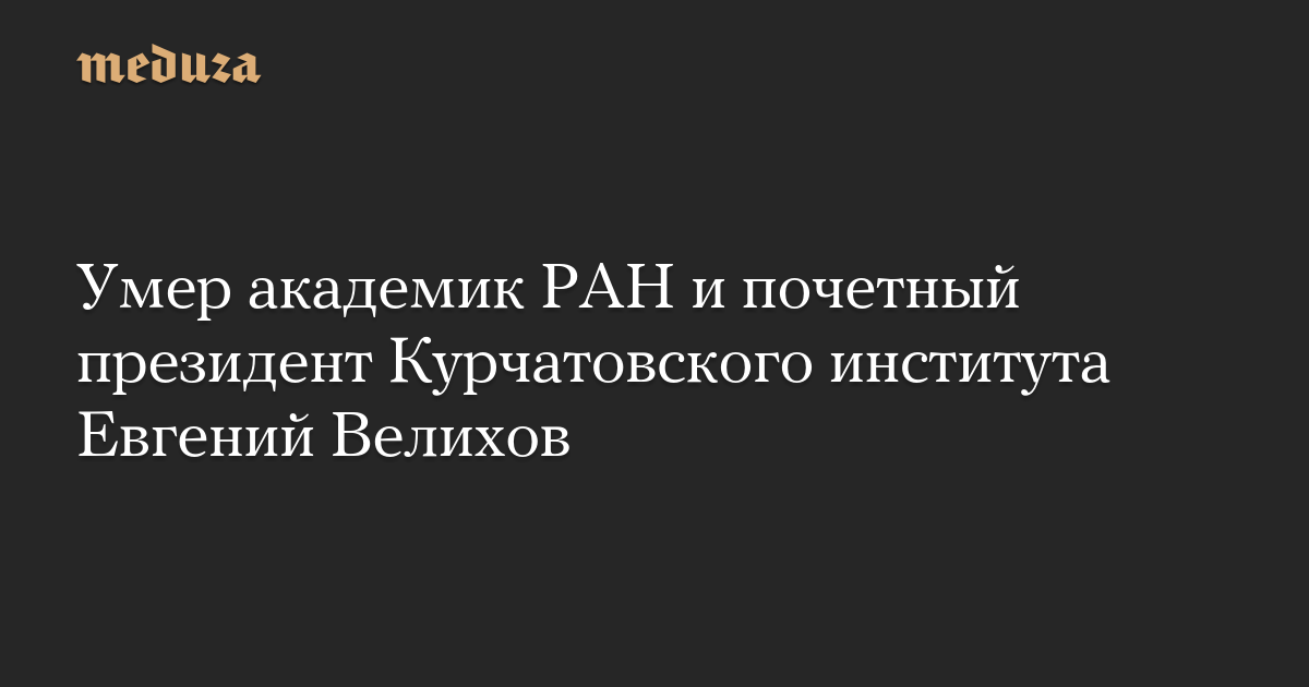 В возрасте 89 лет умер физик, специалист в области термоядерного синтеза, академик Российской академии наук Евгений Велихов. Смерть ученого российским изданиям подтвердили в РАН и Курчатовском институте.