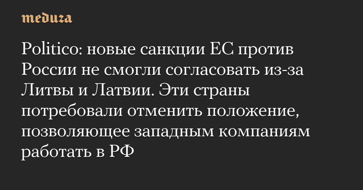 Politico: новые санкции ЕС против России не смогли согласовать из-за Литвы и Латвии. Эти страны потребовали отменить положение, позволяющее западным компаниям работать в РФ