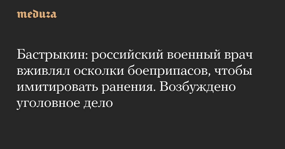 Бастрыкин: российский военный врач вживлял осколки боеприпасов, чтобы имитировать ранения. Возбуждено уголовное дело